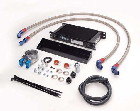 An oil temperature reduction of 30 to 40 degrees Fahrenheit can be realized with the installation of our specially designed Oil Cooler Kits. These Oil Cooler Kits allow hot oil to be circulated and cooled outside of the motor through a high efficiency cooler.Thousands of miles of engine life will be added by keeping a "cool" coating of oil on high-wear engine components such as piston rings, piston skirts, cam bearings, and rod bearings.The Oil Cooler Kit is complete and includes all the necessary adapters, fittings, and hoses you will need for installation. This will require the drilling of mounting holes to install this kit. Instructions are included.::This kit does not fit the Nismo edition 370Z:: This kit contains a Thermostatic Plate - A Fram Oil Filter #PH3950 or equivalent MUST be used to insure proper seal!
